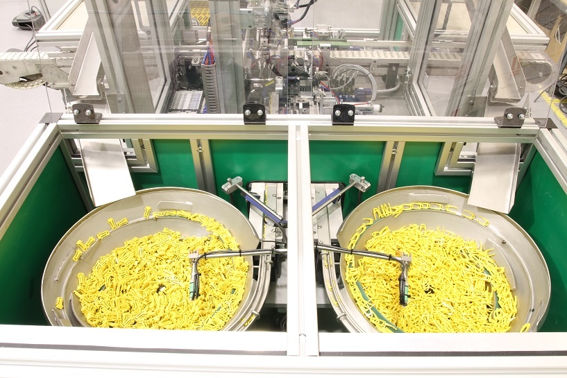 Equipo de Inserción Automática de clips de sujeción de interruptores diferenciales.